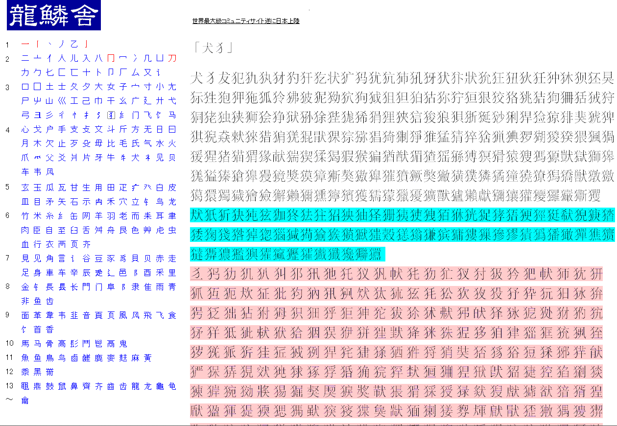 中国語部首偏旁入力(所属部首順)